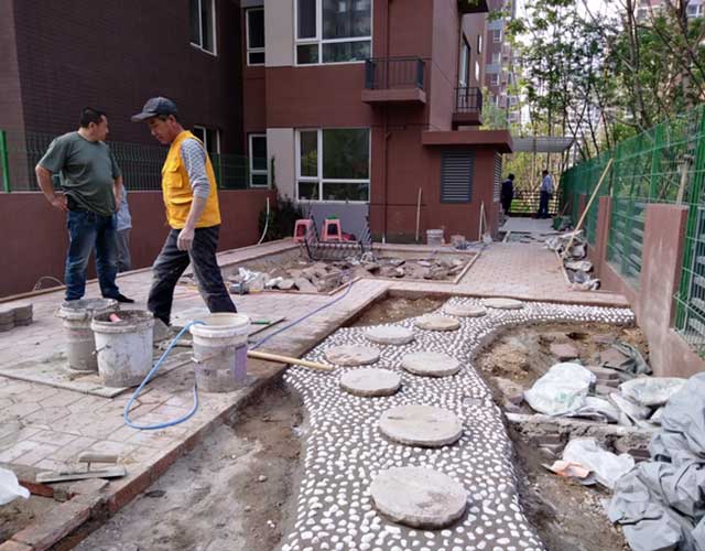庭園的各構成要素的位置、形狀、比例和質感在視覺上要適宜,以取得“平衡”,類同于繪畫和攝影的構圖要求,只是庭園是三維立體的,而且是多視角觀賞。在庭園設計上還要充分利用人的視覺假象,如在近處的樹比遠處的體量稍大一些,會使庭院看起來比實際的大。蘇州的網獅園為了達到水波浩渺的擴大感,而把水域周邊景觀按比例縮小,也是同理。
