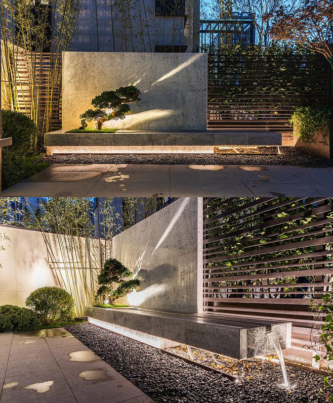 多觀賞點的庭園引導視線往返穿梭,從而形成動感,除坐觀式的日式微型園林外,幾乎所有庭園都應在這一點上做文章。動感決定于庭園的形狀和垂直要素(如綠籬、墻壁和植被)。如正方形和圓形區域是靜態的給人寧靜感,適合作座椅區,兩邊有高隔的狹長區域讓人急步趨前,有神秘性和強烈的動感。不同區間的平衡組合,能調節出各種節奏的動感。使庭園獨具魅力。